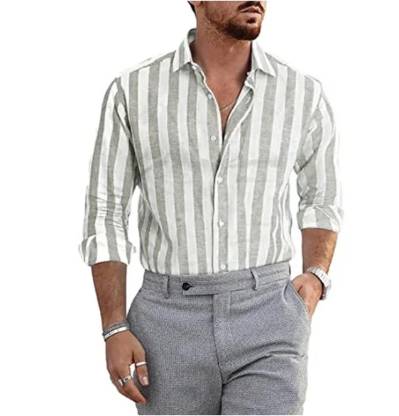 Made from premium quality cotton linen blend, this shirt offers a perfect balance of breathability and durability, ensuring you stay comfortable all day long. The timeless striped print adds a touch of sophistication, making it suitable for a variety of occasions, from casual outings to formal events.